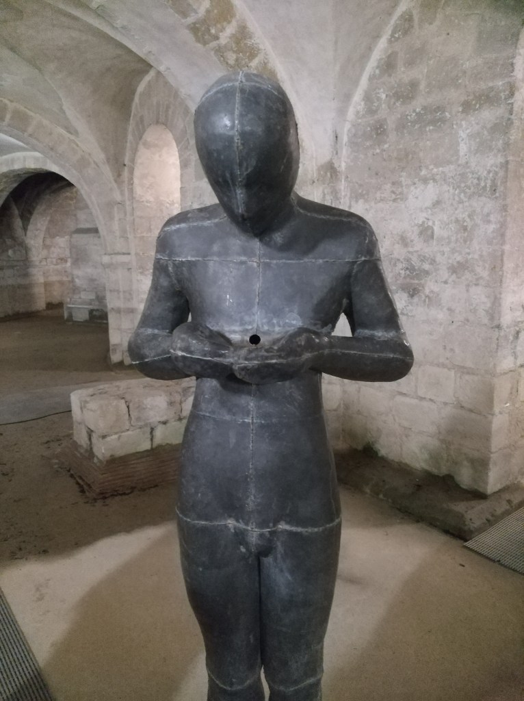 Who doesn’t like a crypt? Oh, all right so they’re not for everyone. But I find them fascinating. The one in Winchester Cathedral isn’t usually open to the public. It has a habit of flooding, so there are no tombs, no alters and certainly no coffee shop. Although there is “Sound II”, a solitary sculpture by Andrew Gormley.