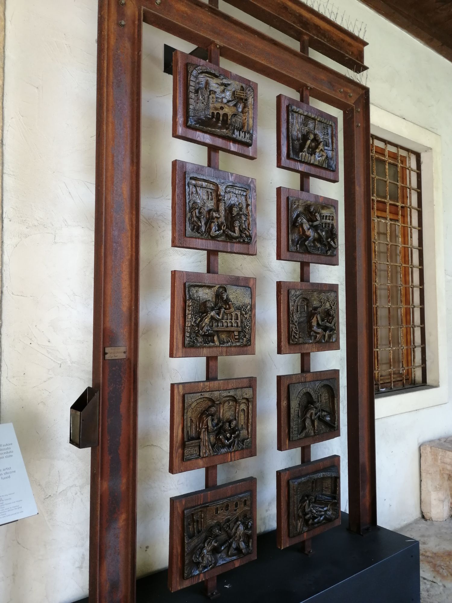 The rest of the museum has a variety of mainly religious frescoes and works of art. These are probably less interesting to those focused on the famous tragedy but are worth a look nevertheless. Juliet’s Balcony can be horrifically busy whereas the tomb was, if you’ll excuse the expression, as quiet as the grave. It’s got a nice courtyard garden and is cool in the heat of the day. If you’re in Verona, and are interested in Shakespeare or anything literary it’s worth a look. And if you get the Verona Card it’s included in the price.